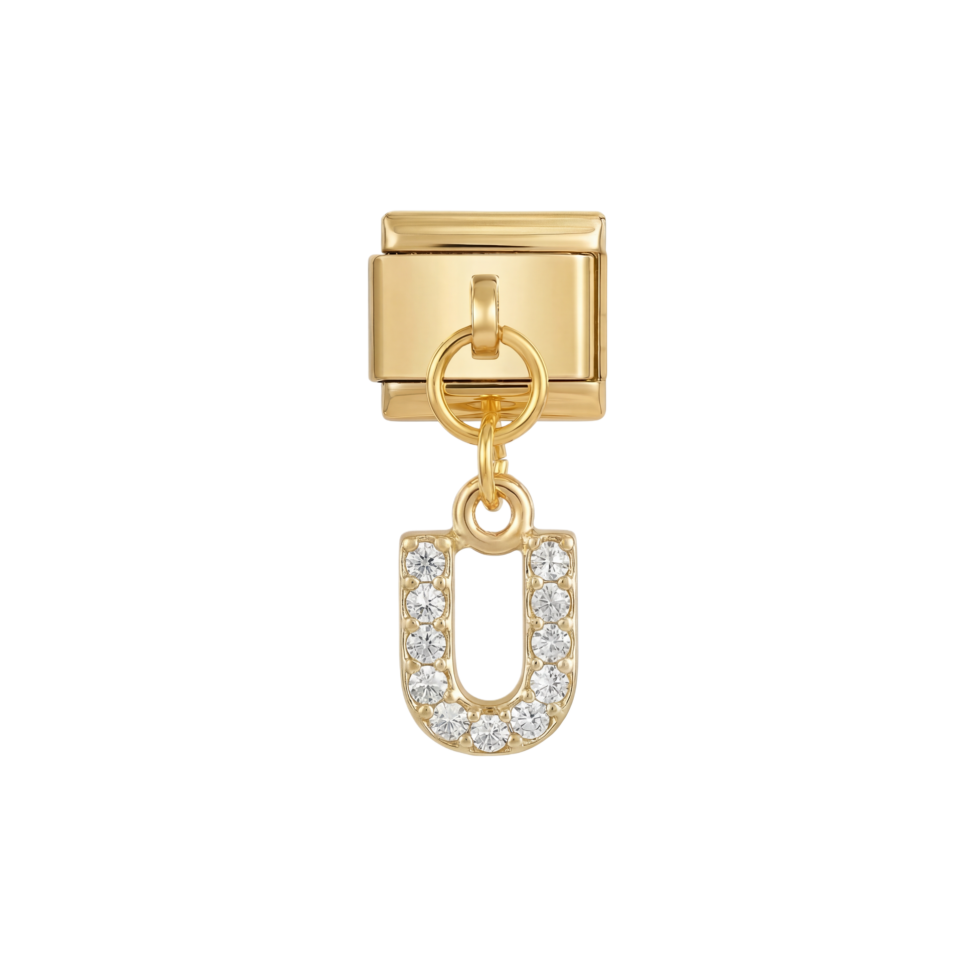 Letter U with stones, Hanging, on Gold