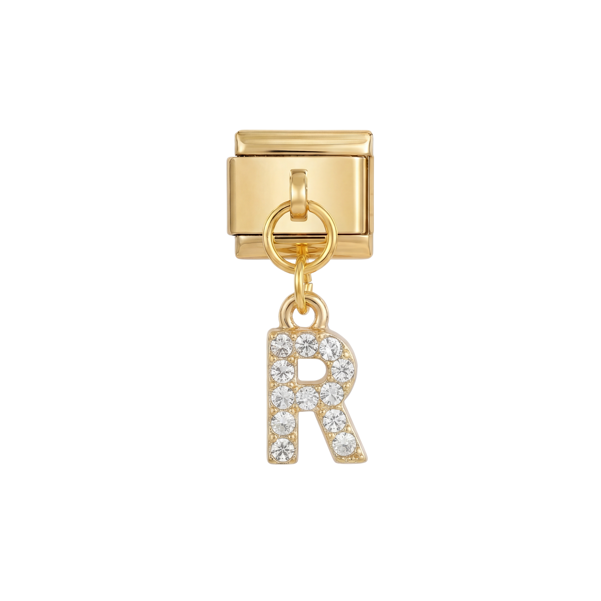 Letter R with stones, Hanging, on Gold